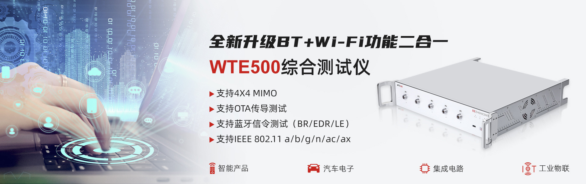 WTE800無線信令綜合測試儀(以下簡稱“WTE800”)是由深圳市中承科技有限公司自主研發(fā)和生產(chǎn),可用于Wi-Fi設(shè)備在研發(fā)、生產(chǎn)、認(rèn)證等環(huán)節(jié)測試的多功能綜合測試儀,通過配置客戶端或AP端參數(shù),真實建立Wi-Fi網(wǎng)絡(luò)呼叫連接,自動實現(xiàn)被測件的各項射頻與協(xié)議性能指標(biāo)精準(zhǔn)測試。